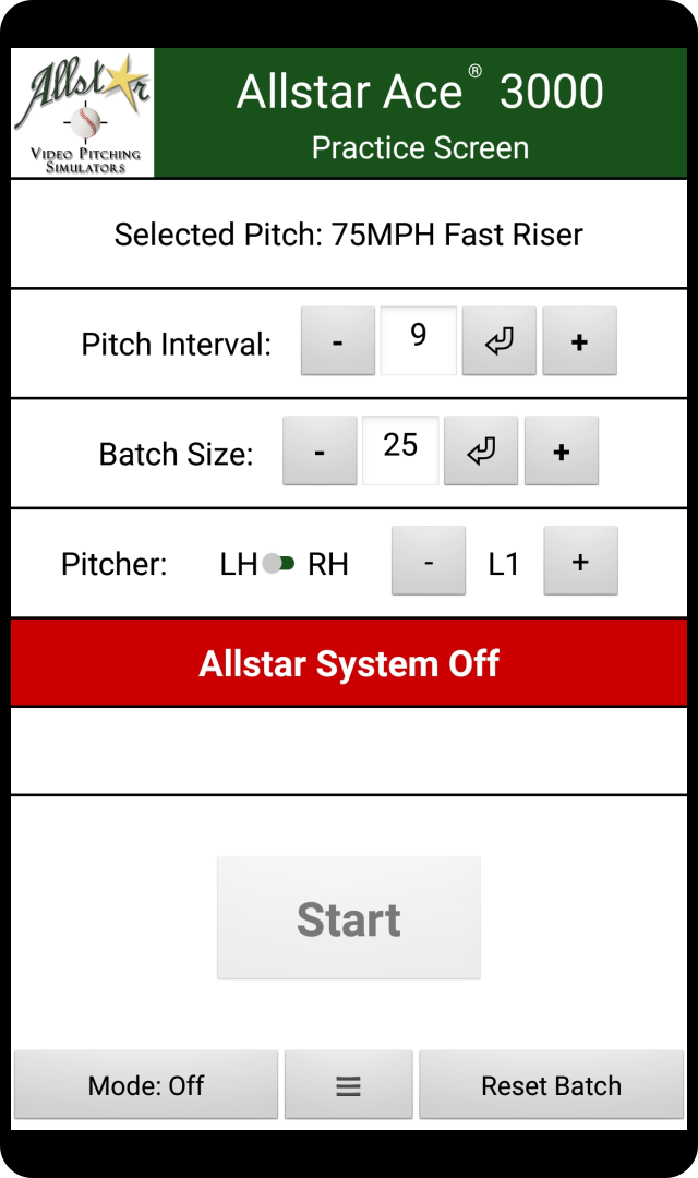 Allstar Ace 3000 Pitching Simulator | 40–100 MPH | 2250 RPM | Wireless