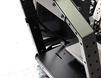 The thick-walled steel construction with a powder-coated finish ensures your racing simulator is sturdy and looks great. Polished aluminum and carbon fiber accents add style while maintaining durability.