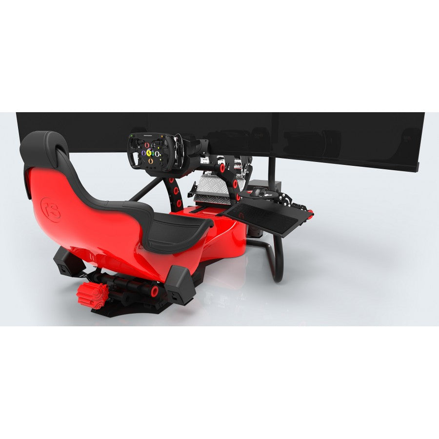 Adjustable frame with reclined seating for an authentic Formula 1-like driving experience.