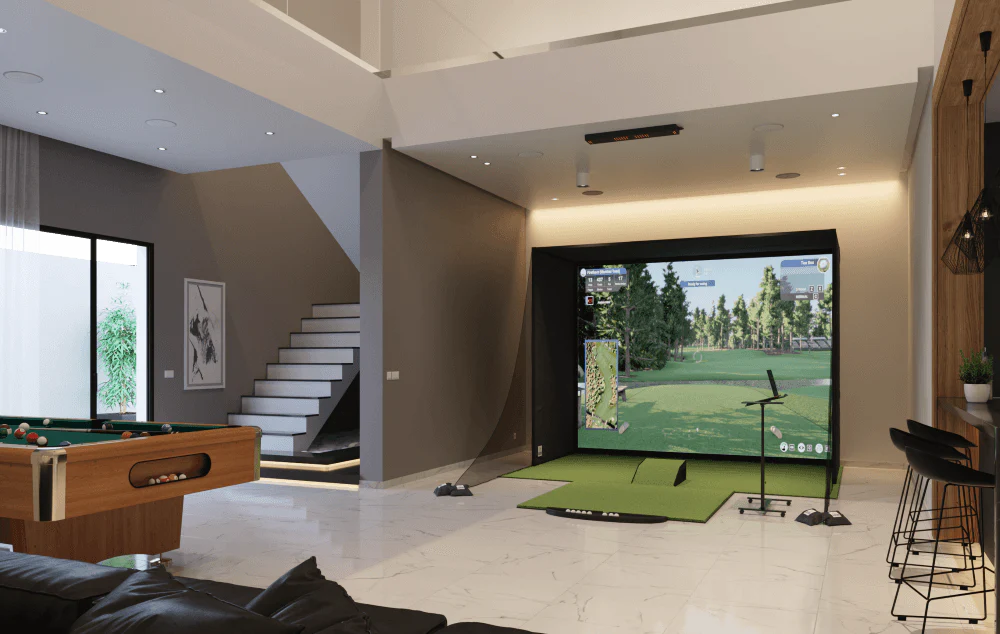Featuring the HomeCourse Retractable Screen, our Retractable Package transforms your space into a golf simulator screen with the click of a button