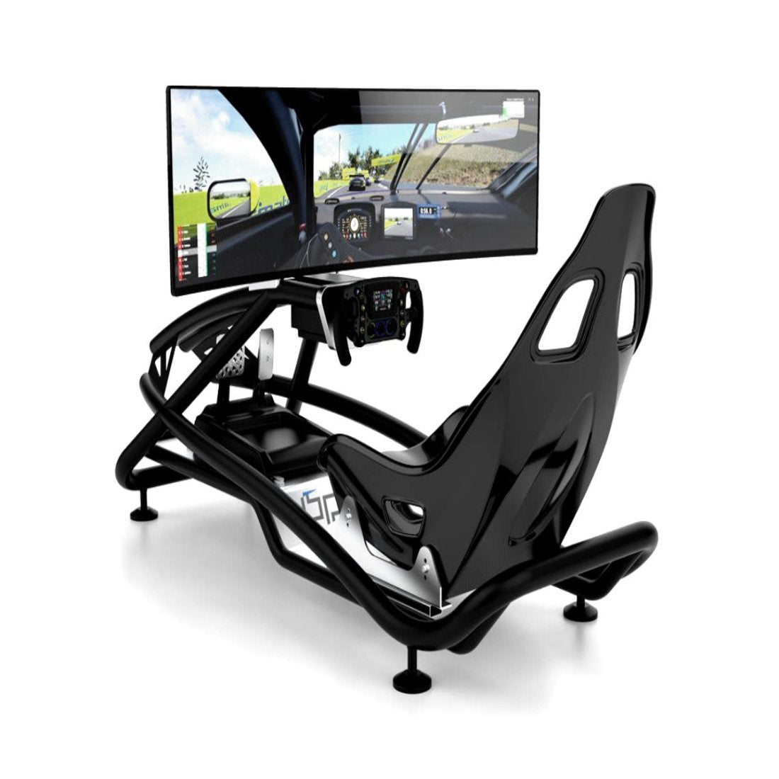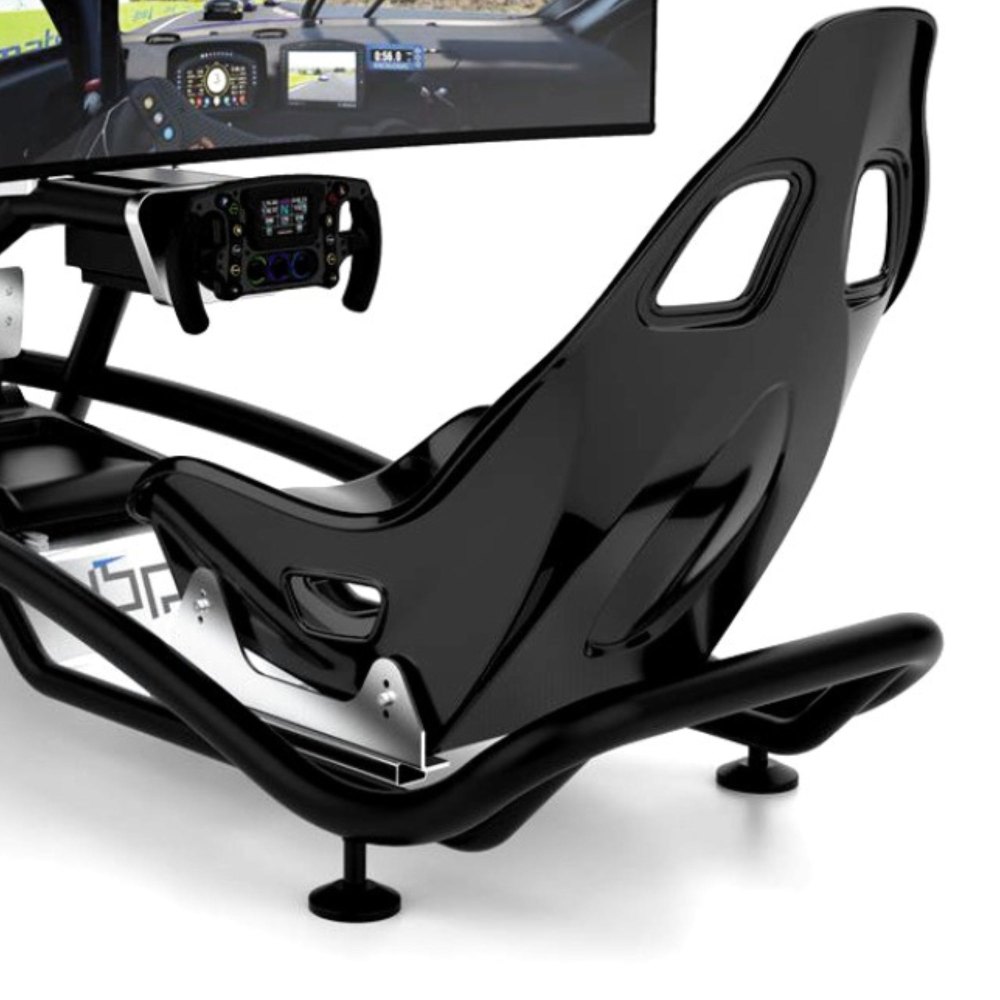 Ergonomic racing seat for comfort during long sessions.