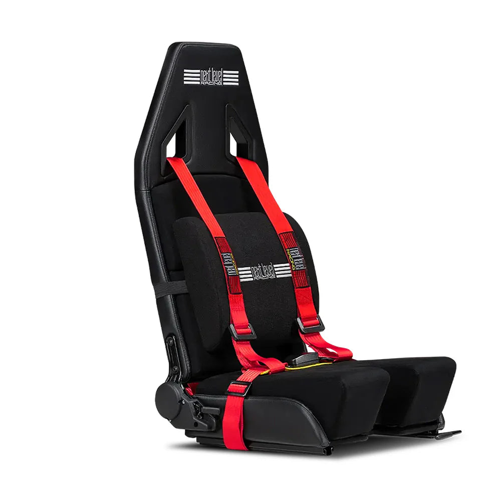 The Flight Simulator Seat offers comfort with high-density foam, PU leather, and suede, featuring a double recliner design and a joystick cut-out for optimal positioning.