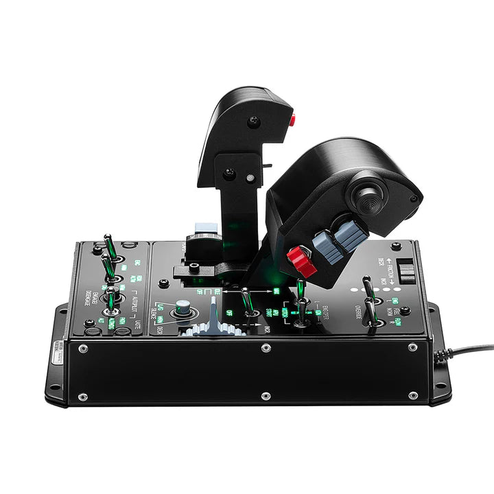 The HOTAS WARTHOG USB joystick offers extreme precision with 19 buttons, H.E.A.R.T HallEffect AccuRate Technology, and a detachable handle and base, replicating the U.S. Air Force A-10C controls for ultimate realism.