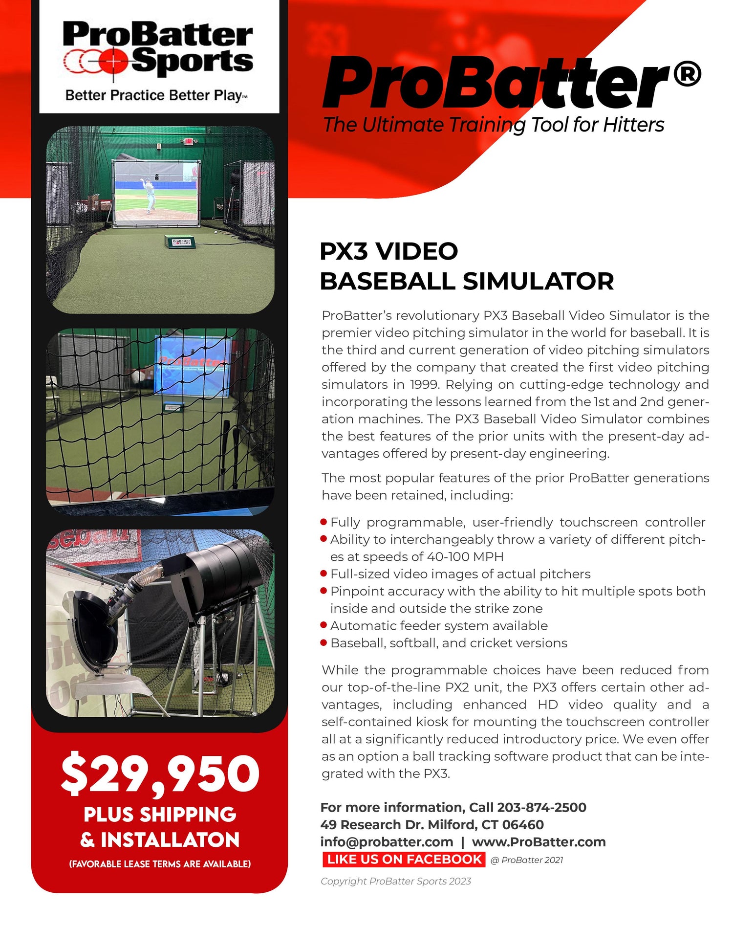The ProBatter Sports PX3 Video Baseball Simulator delivers elite, real-game pitching experiences.