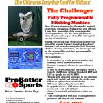 After 20 years of producing the world’s best video pitching simulators, ProBatter is now offering it very first, non-video, fully programmable pitching machine. It’s the same pitching machine that is used as part of its PX3 video pitching line of simulators. Relying on cutting edge technology and incorporating the lessons learned from two decades of designing and manufacturing the Gold Standard of video pitching simulators, the Challenger will set the standard for portable, programmable pitching machines.
