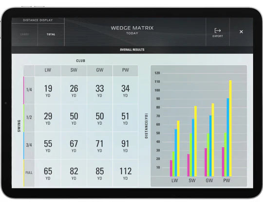 Hit a variety of shots with up to four wedges. Learn your distances for pitches, 1/2 shots, 3/4 shots, and full swings!