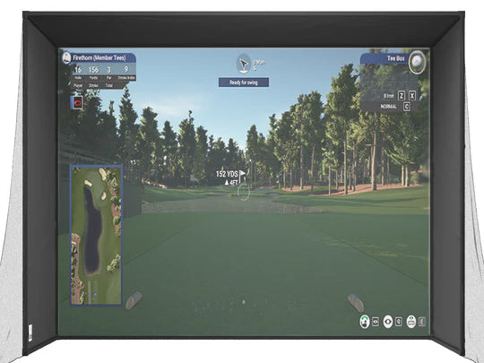 Includes SwingTurf, 4K short throw projector, HDMI cable, fits 11'W x 15'D x 8.5'H total space. Practice, play, and improve without the need for a permanent setup using this complete system.